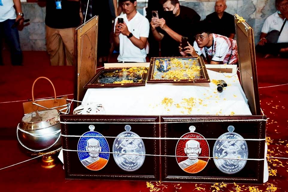 พร้อมพุทธศาสนิกชน ได้เข้าร่วมพิธีพุทธาภิเษกในเวลา 15.00 – 16.00 น. โดยพระเดชพระคุณหลวงพ่ออ่าง สิริจันโท, หลวงพ่ออนันต์ วัดบางพลี, หลวงพ่อตี๋ วัดหูช้าง, หลวงพ่อสมบูรณ์ วัดหงส์รัตนาราม ได้เมตตาอธิษฐานจิตปลุกเสกวัตถุมงคล รุ่น “คงกระพัน” ปัจจัยทั้งหมดในการร่วมบุญเพื่อเช่าวัตถุมงคลรุ่น “คงกระพัน”